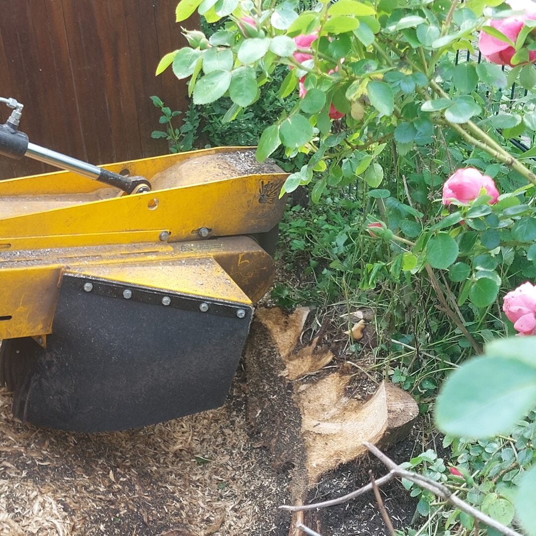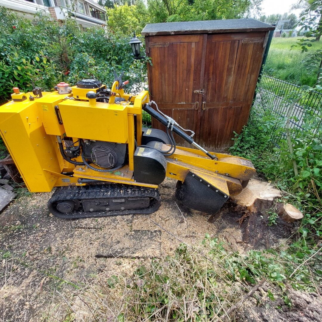 In Hoofddorp heb ik een spar gekapt en de stronk weggefreesd. Dezelfde klant had ook nog een grote stronk in de achtertuin staan en die heb ik ook weggefreesd. In beide gevallen wilde de klant er tegels overheen leggen. Hij had het huis net gekocht en het hele huis inclusief de tuin werd verbouwd.