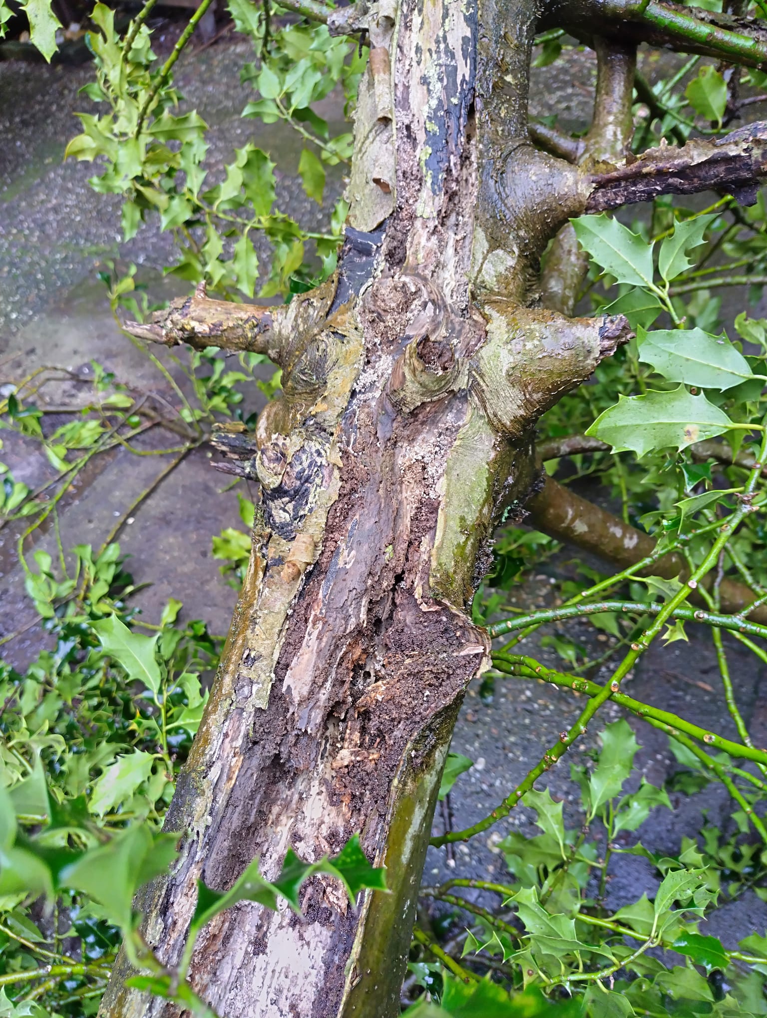 Weer in Amsterdam geklust. Een klein boompje. Een hulst. Helaas was de stam rot.